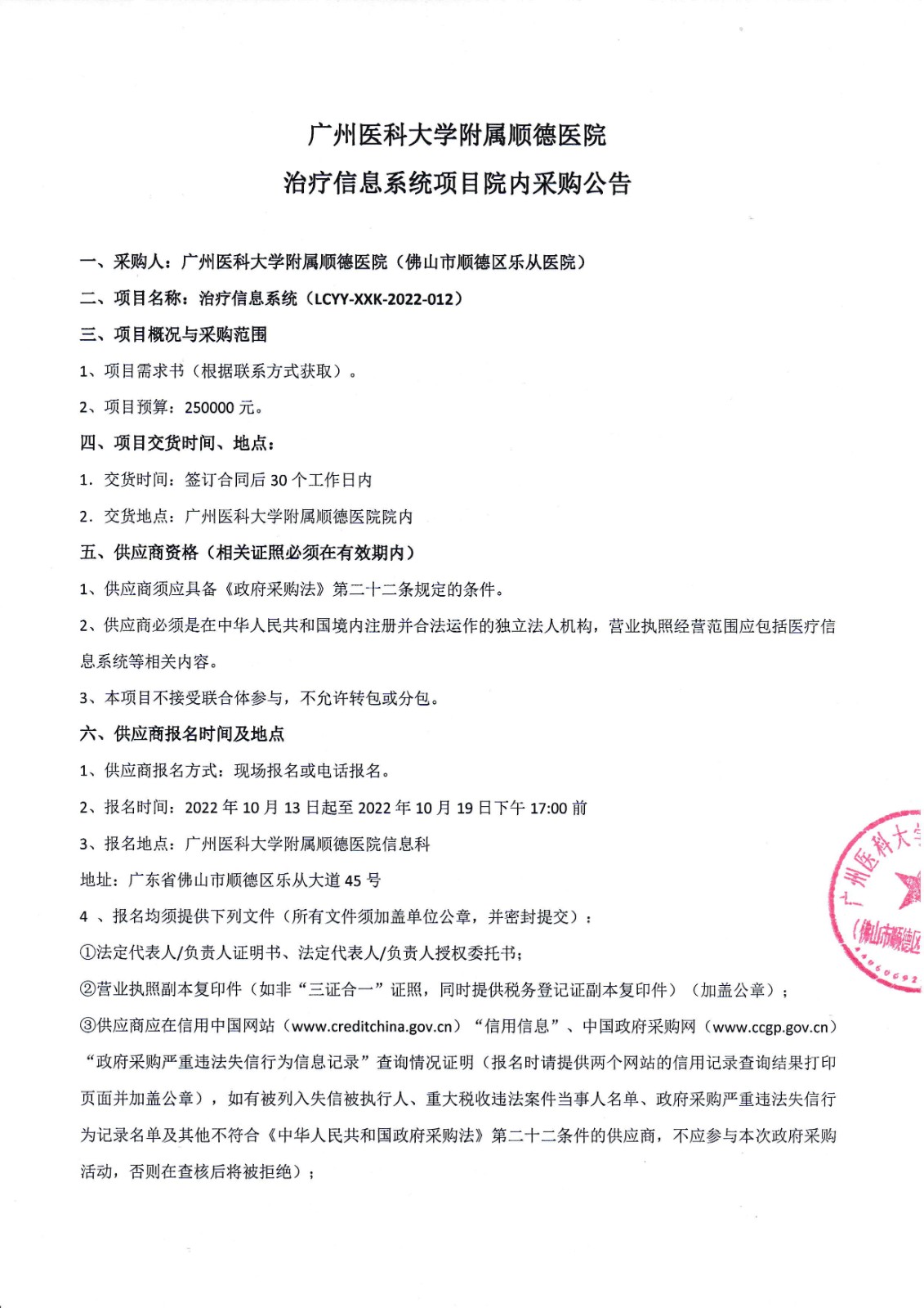 治疗信息系统项目-院内采购公告
