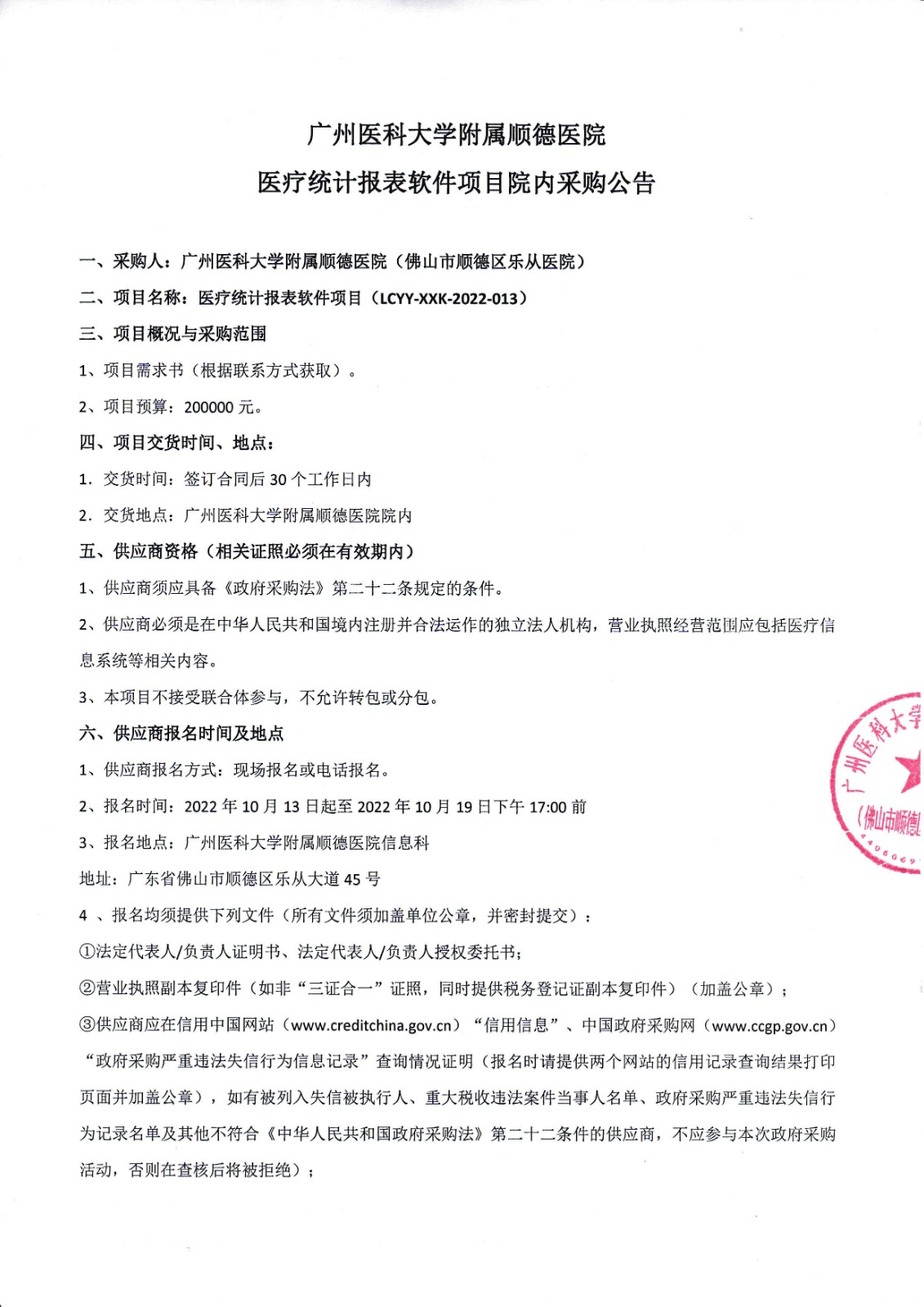 医疗统计报表软件项目-院内采购公告