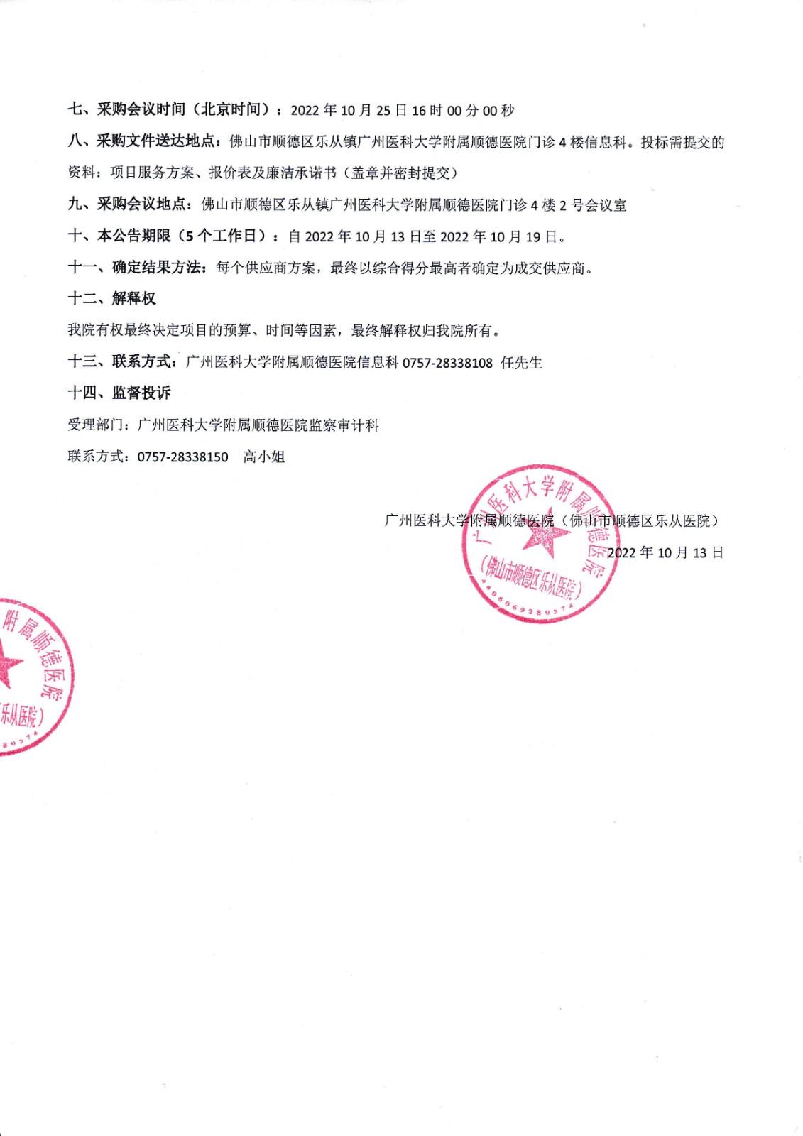 投诉咨询电话:0757-28338122 传真:0757-28338118 急救电话:0757-28338120