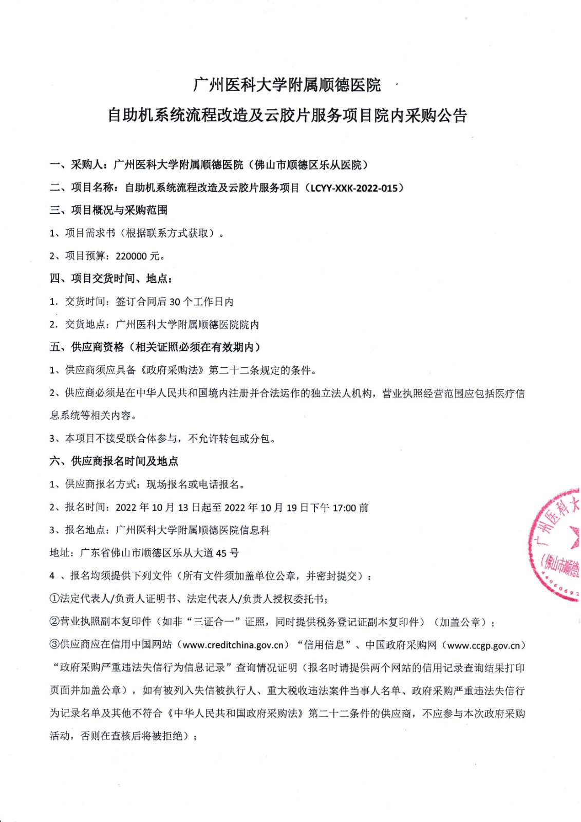 自助机系统流程改造及云胶片服务项目-院内采购公告