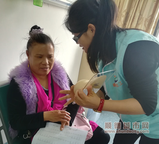 社工在演示按摩乳房的方法
