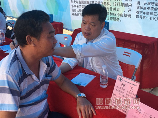 “健康顺德·全民共享--2017顺德区名医名校零距离大型巡回义诊”活动均安站正好撞上“双11”,广州医科大学附属顺德医院手足关节整形科主任李卫、皮肤科副主任余南生幽默地说道,“双11”跟街坊们来场健康“约会”!
