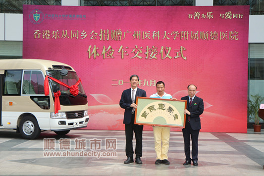 近日,车头绑着红结的一辆体检车出现在广州医科大学附属顺德医院,这是由香港乐从同乡会捐赠的体检车,该院当天举行了体检车交接仪式。