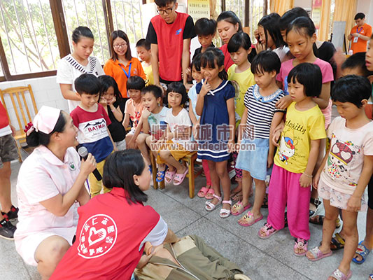 顺德城市网消息 (记者潘洁玲 通讯员陈文娟) 近日,广州医科大学附属乐从医院联合上华村委,在上华村委会举办“暑期夏令营-急救技能培训班”,活动共吸引30多位小朋友及志愿者参与。