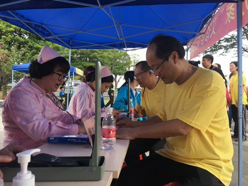 耳鼻咽喉科占顺堂医生为群众开展疾病筛查的同时,重点宣讲了听力损害对身体的影响,让群众重视听力保护,主动投入到防聋工作当中。护理志愿者们利用群众排队等候测量血压的时间向群众普及儿童听力保护知识、强调新生儿听力筛查的重要性,并派发宣传小册子供群众免费阅读。