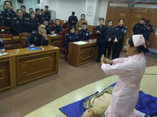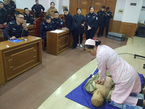 培训先由顺德区红十字会培训师、我院门诊部曾秀芹副主任对初级救护的目的意义、心脑复苏的理论知识、操作要点进行了讲解。通过理论与真实案例相结合的方式进行了深刻剖析,让警务人员对初步救护知识与急救技能的操作要点有了进一步的认识。