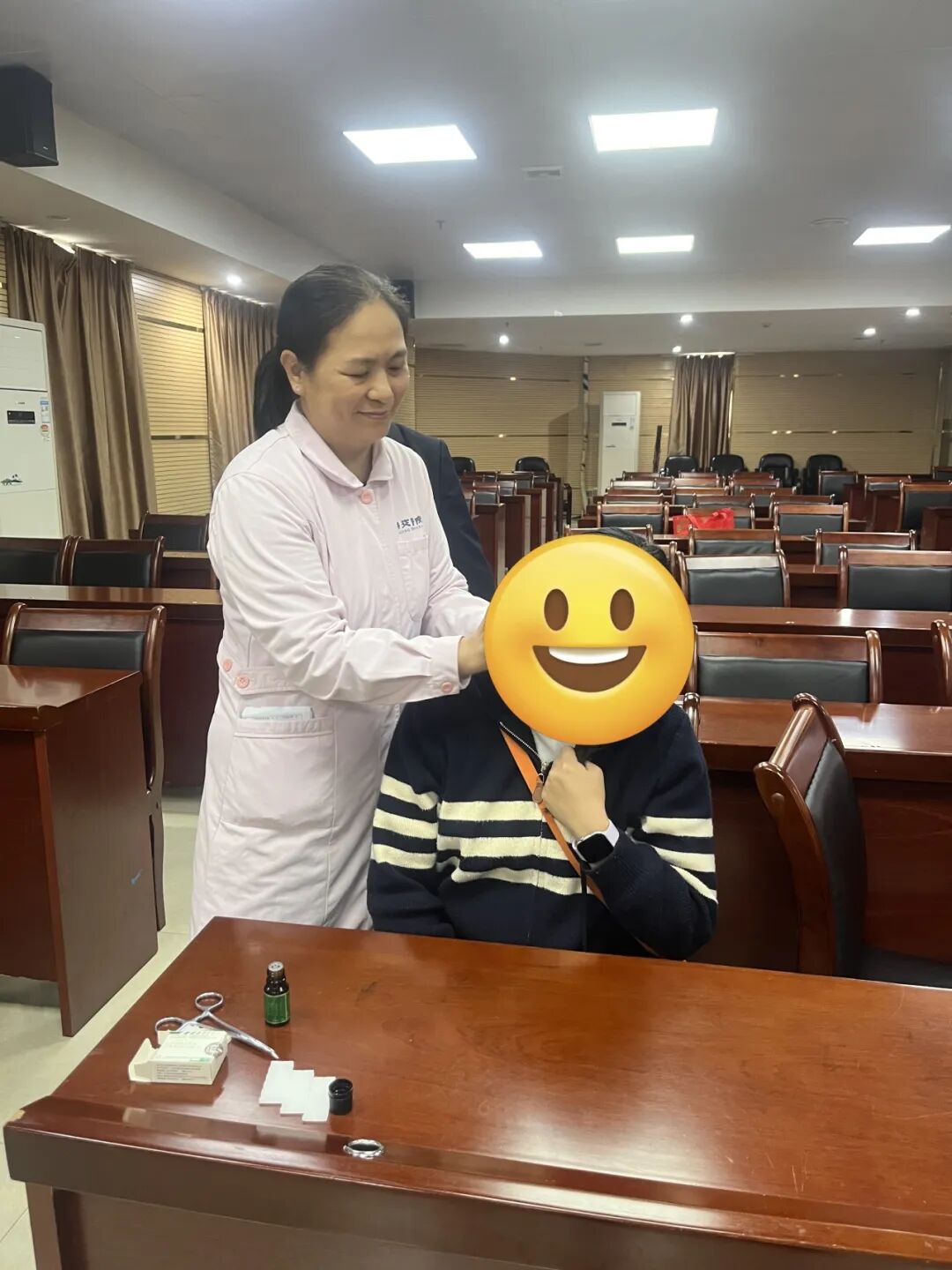 讲座结束后,大家“沉浸式”体验中医适宜技术,缓解身体不适的同时,学习实用的养生技巧。