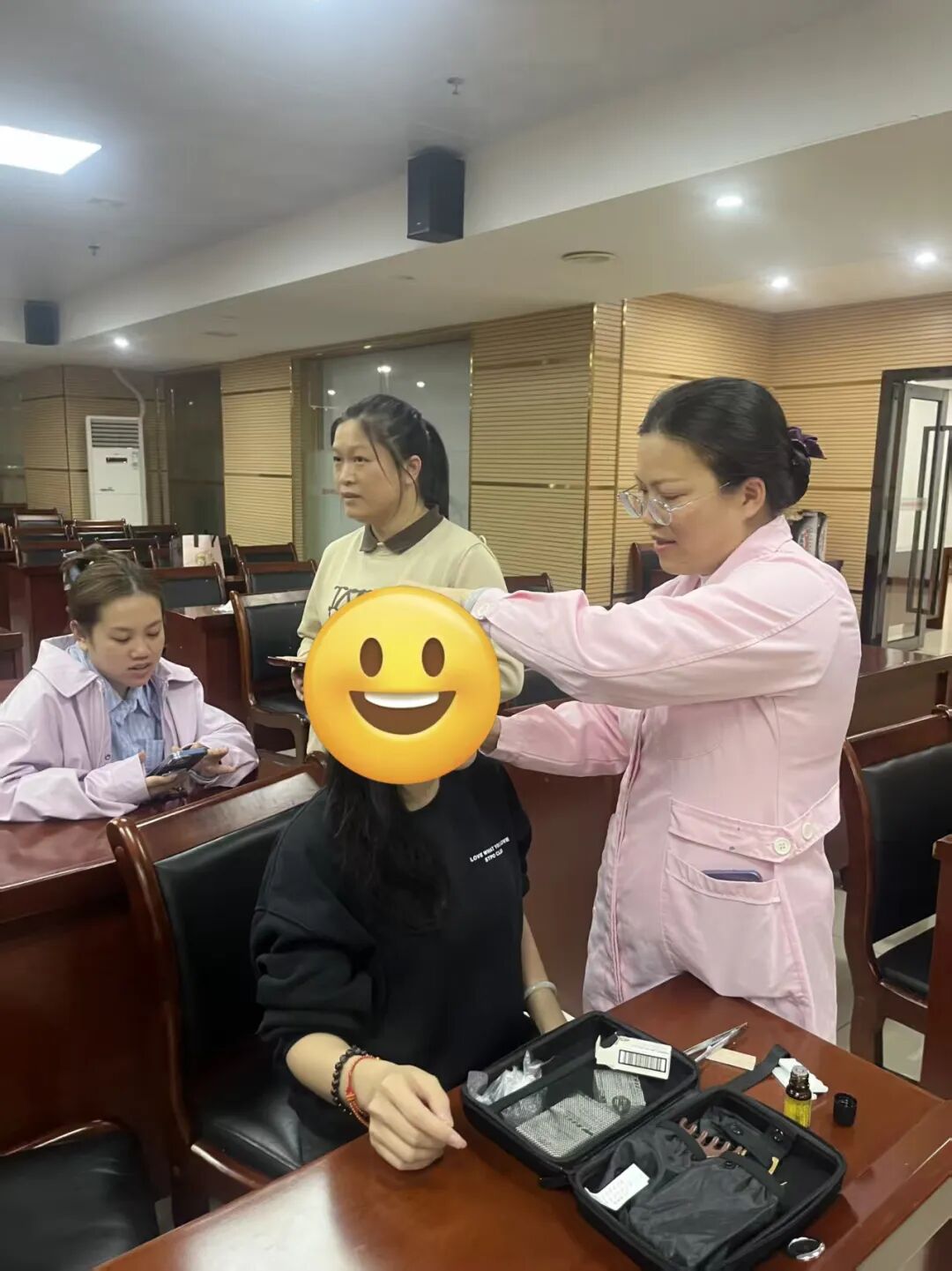 讲座结束后,大家“沉浸式”体验中医适宜技术,缓解身体不适的同时,学习实用的养生技巧。
